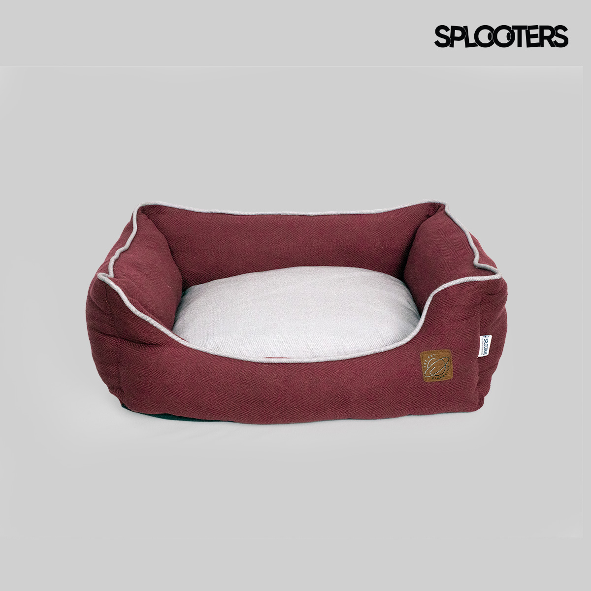 All Weather Hybrid Dog Bed: Nest Bed + Metal Bowls (Maroon & Grey | Large & XL) - The Pet Dimension