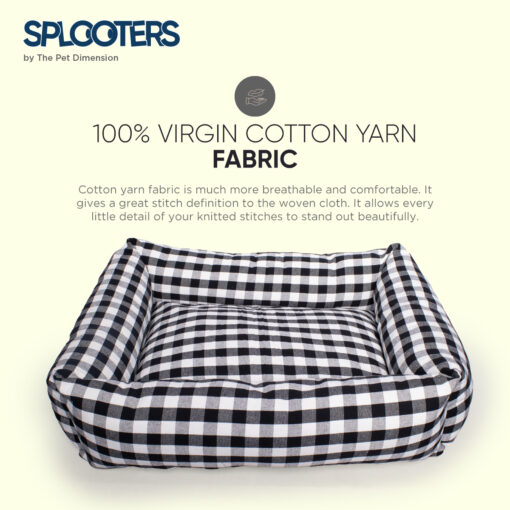 Super Comfort Sofa bed with 100 % Virgin Cotton, High Strenth Yarn Dyed Woven Fabric, with anti-skid backing, ideal for small ,medium & large dogs. High level comfort fit filling for added comfort when they sleep. First of it’s kind pet bed in India with “3 chambered fillings” to hold the shape intact. Polyesters dyed at 200 Degree Celsius– so that colours don’t bleed.