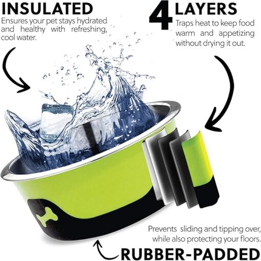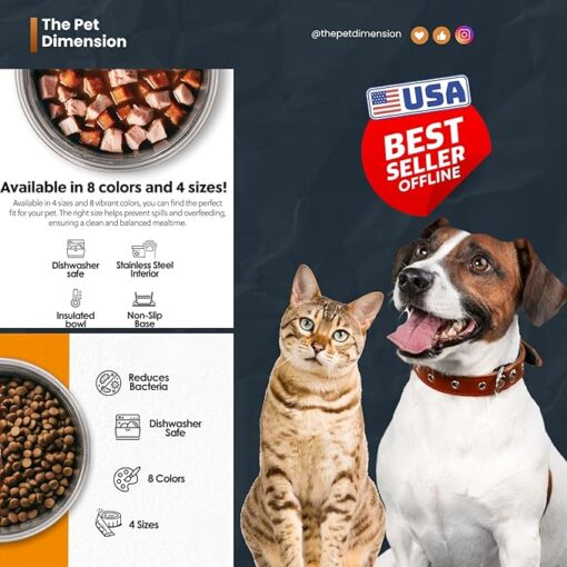 The Pet Dimension Dog Bowls Thermocool – Crafted with premium insulated stainless steel, this non-slip, no-spill bowl is designed to keep your pet’s food warm and water cool for longer. Perfect for dogs and cats, it combines durability with comfort, ensuring every mealtime is fresh, stable, and mess-free.